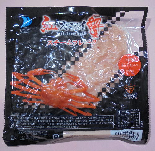 紅ズワイのフレ-ク(300㌘)です そのまま食べても美味しく、 味噌汁などにいれてカニ汁は いかがでしょう。 カニたま、オムレツなどにも。 税込特価1000円でサ-ビス。 |